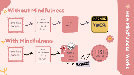 Mindfulness helps us pause, creating space between what happens and how we respond, so we can choose calm, kind, and wiser actions.